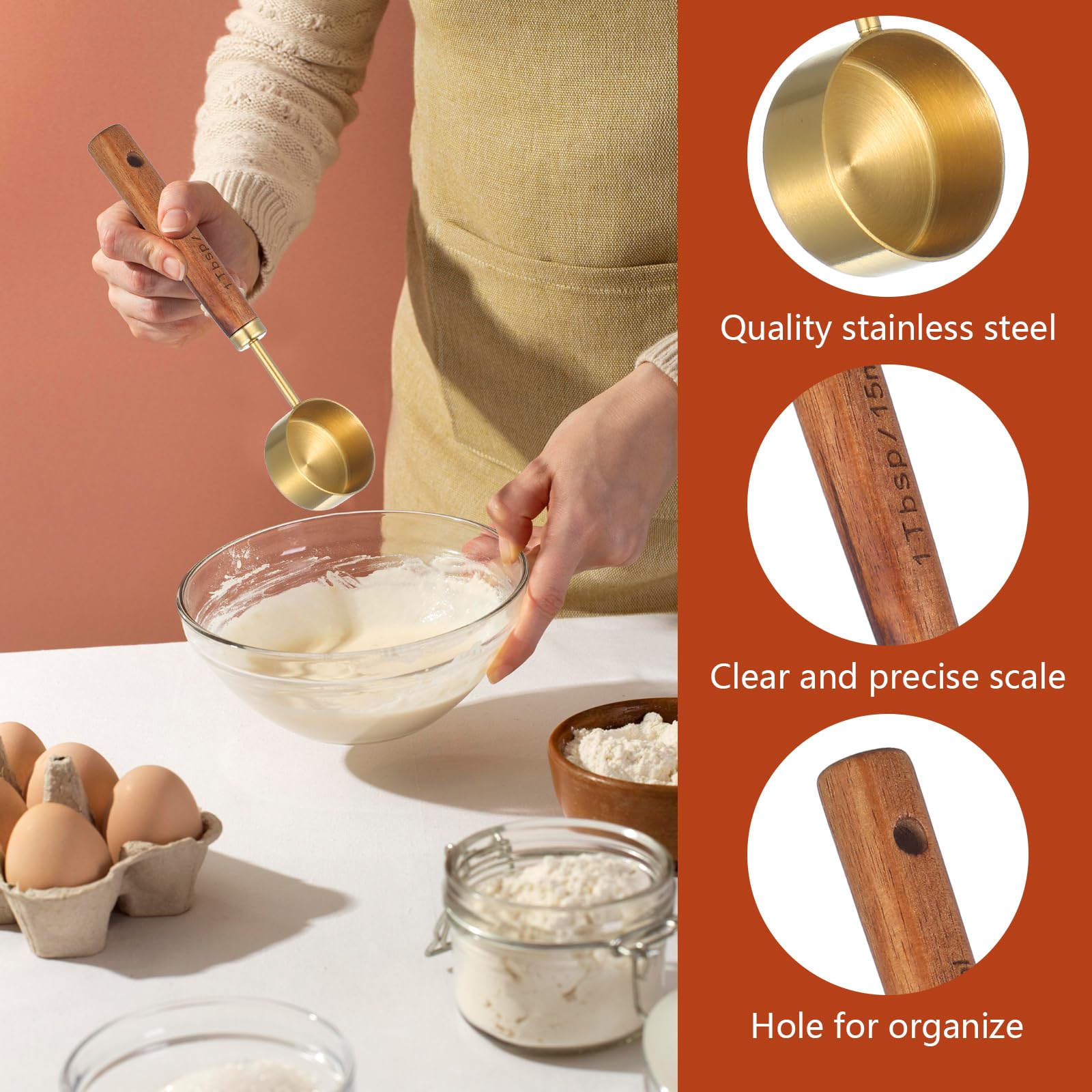 Detalles: La cuchara medidora de café Tyqour de 1 cucharada está fabricada en acero inoxidable y madera, ofreciendo precisión con una sola cucharada. Ideal para usar en tazas medidoras de café, esta cuchara medidora de madera garantiza medidas precisas.